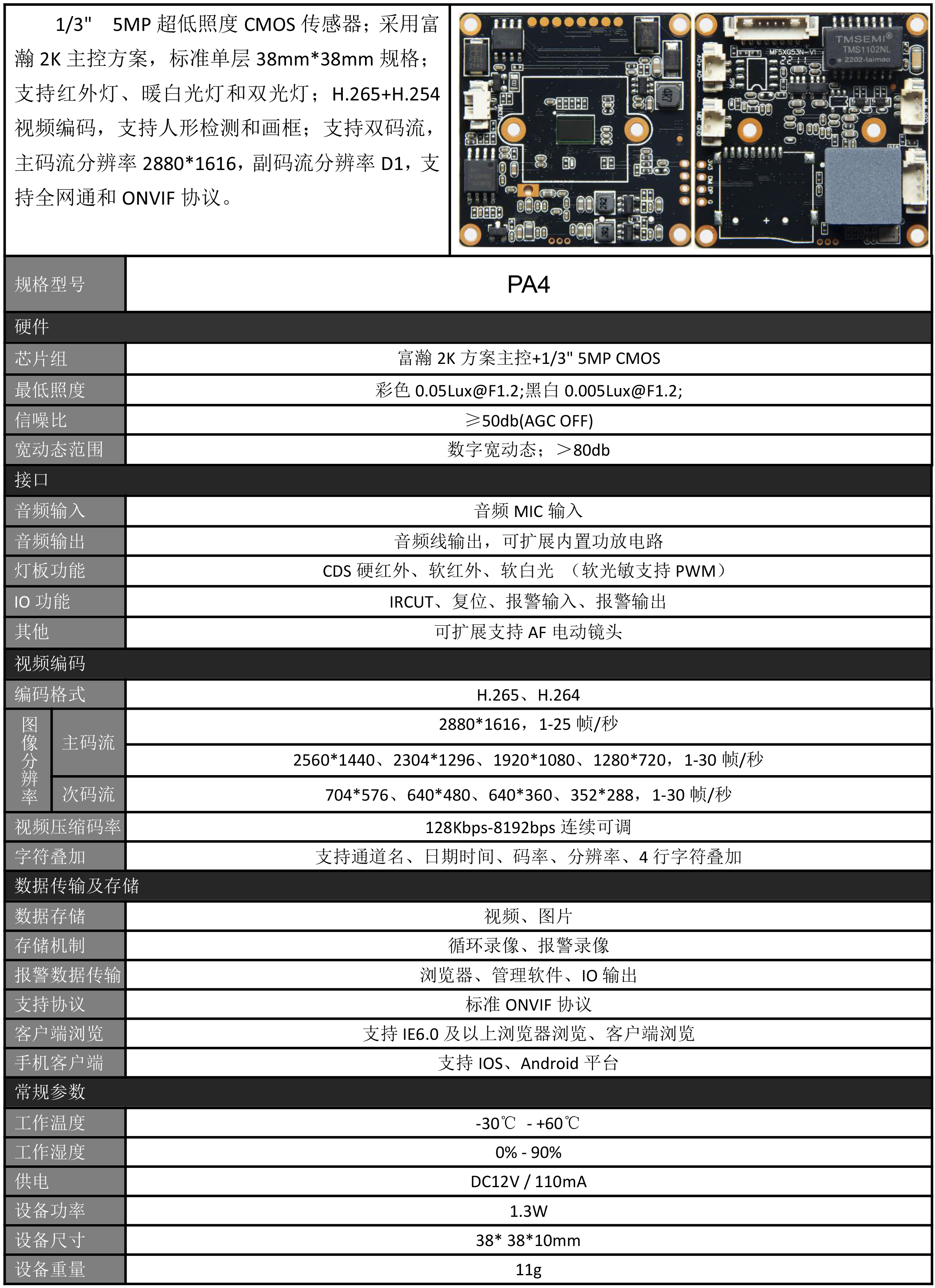 دستهبندی: برد دوربین مداربستهبرچسبها : برد تحت شبکه H8D IPC moduleمشخصات برد: 1/3" low-light CMOS sensor, using FH8852V200 solution, single board, size: 38mm×38mm